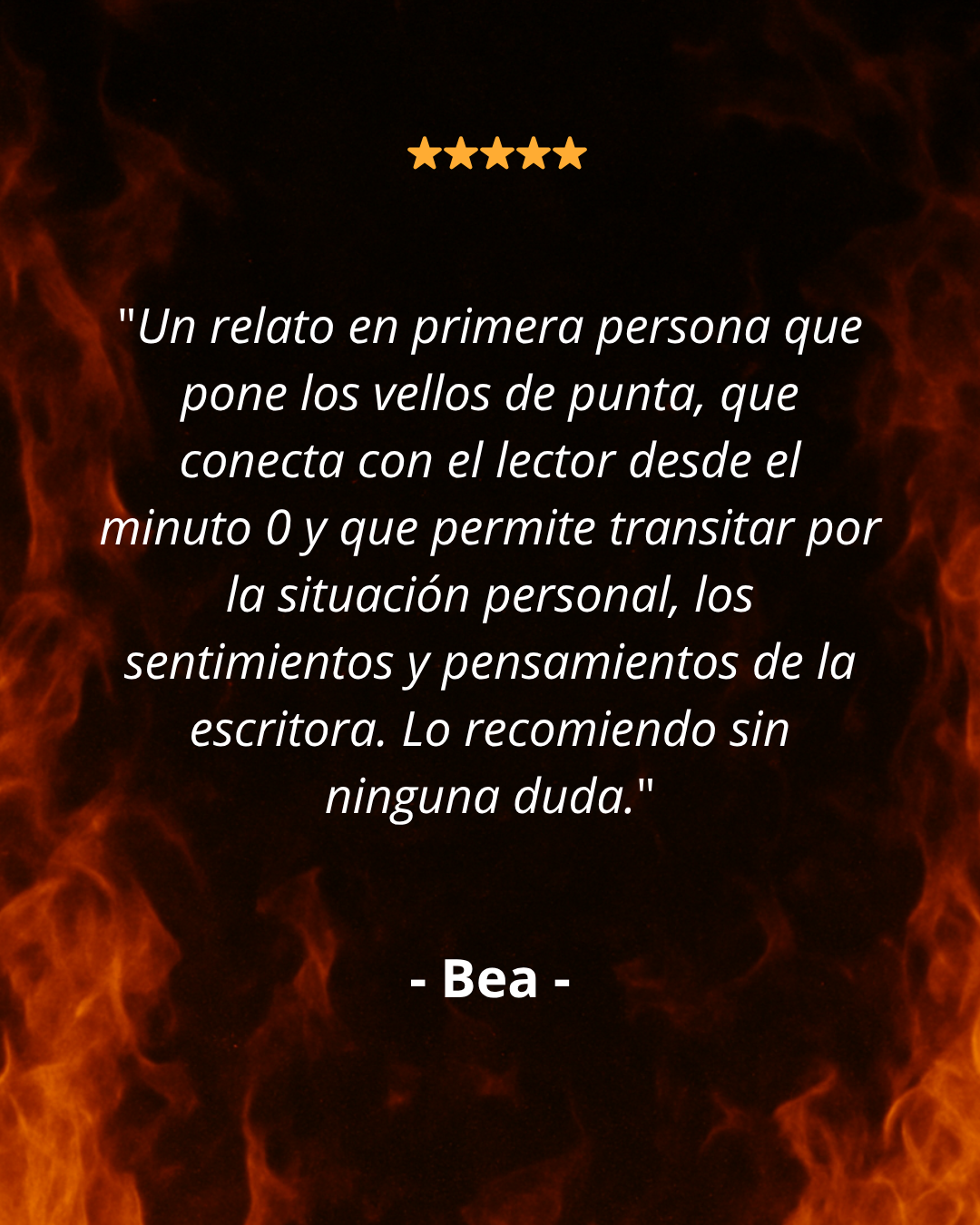 "Totalmente recomendable. Lo leí en un sólo día ya que la historia está muy bien narrada y te hace empatizar mucho con la situación que vive la protagonista. Sin duda, un 10!!!"